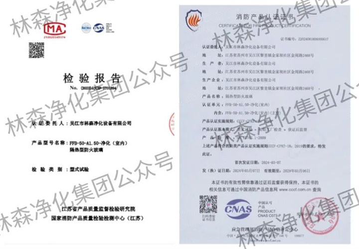 AG尊龙净化集团的新型净化隔热防火中空玻璃耐火时长可达1.5小时,,是行业内目前唯一拥有完整50净化隔热防火中空玻璃国家级检测报告的产品。。每一樘净化隔热防火中空玻璃都需录入消防系统,,请认准消防标签。。。
