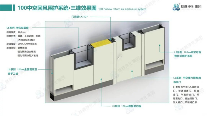 LS系列100中空回风围护系列产品,,,可根据洁净室围护系统进行选择适合的回风系统和回风方式。。防火时间可达1小时以上。。