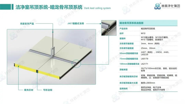 LS系列暗龙骨吊顶系统适用 于1000级以下的洁净室,,,,板材可选用多种夹芯板。。