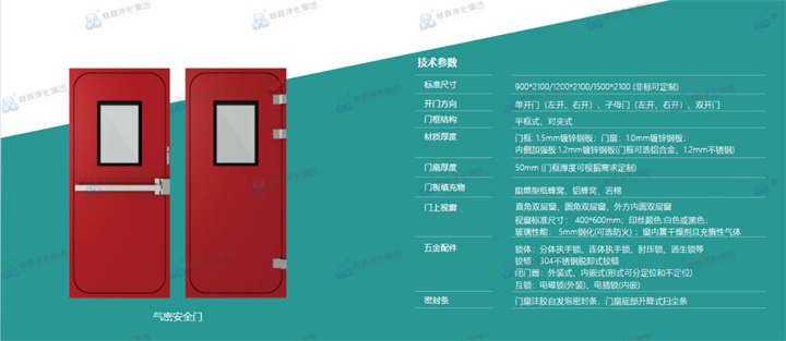 安全洁净门可根据需求配置防火玻璃视窗。。。适用于消防通道、、、电梯厅、、、走廊区的防火分隔。。