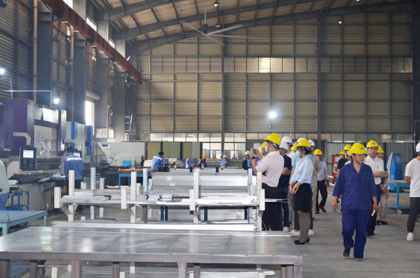 会议间隙,,,,AG尊龙净化徐厂长带领参加会议的人员参观了AG尊龙净化的展厅和生产车间,,为大家介绍了AG尊龙净化的产品和车间规范化管理。。。。大家到生产一线找问题、、、、难点、、痛点,,,回到课堂探讨解决方案,,再到现场验证可行性,,,探索产教的深度融合发展。。。。