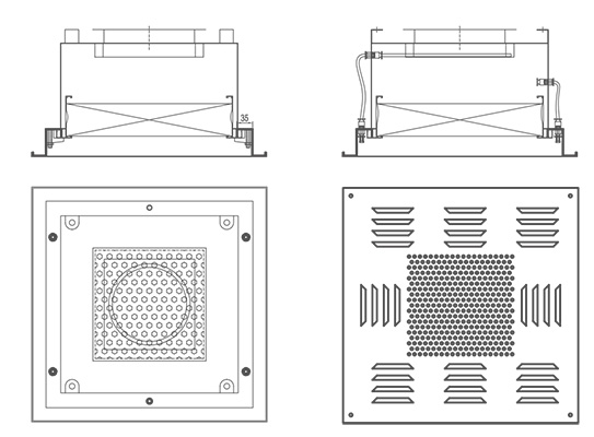 型号 | 过滤器规格(L×W×D) | 箱体尺寸(mm) | 接口尺寸(mm) | 风量(m3 /h) | 开孔尺寸(mm) |