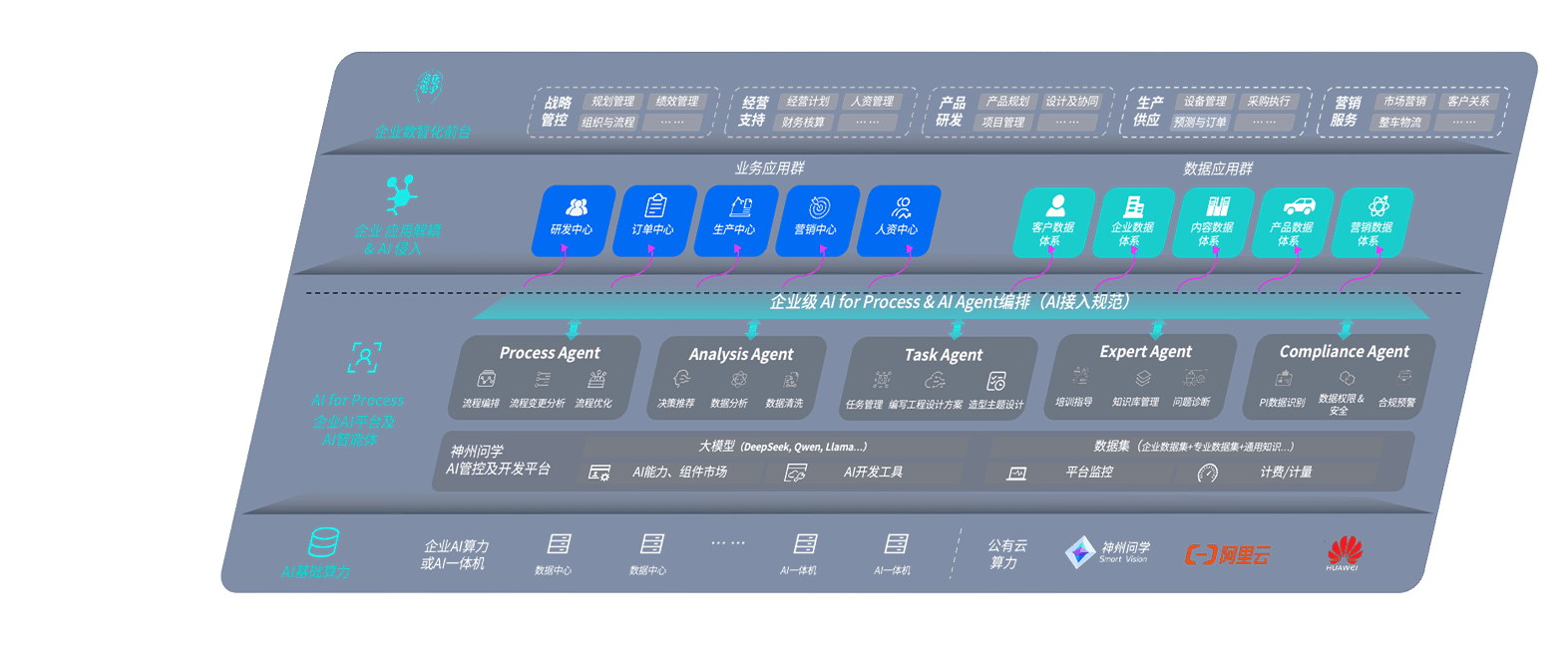 端到端的一站式AI工作空间深度融合了从企业战略规划到日常经营的全流程业务板块,,,定向解决车企内部领域多、、、部门多、、、链条长、、、、场景碎片化等难题,,,,支持车企快速构建以AI为核心的生产力写作体系,,,,实现任务执行与AI能力的无缝集成与交互